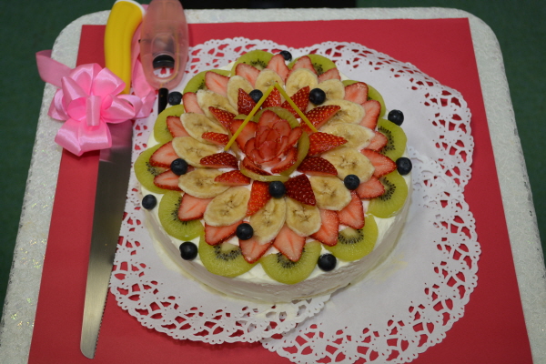 敬礼式では、開会宣言の後、入山聖基教会長の祝祷、み言訓読、ケーキカット、入山聖基教会長のみ言、婦人部長の挨拶、壮年部長の挨拶、全体報告祈祷、記念撮影の順に進行しました。