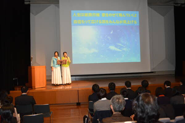 八王子市学園都市センター(東急スクエア12階)イベントホールにて「世界平和統一家庭連合出帆多摩東京記念礼拝」を開催しました。最初に聖歌隊の讃美、各教会の活動報告の後、司会の開会宣言で礼拝を執り行いました。全体で天一国の歌を讃美し、山本文登教区長の挨拶、み言訓読、佐野邦雄天一国特別巡回師より「祝福家庭の完成を通して救国救世を成し遂げよ」という説教タイトルでみ言を賜りました。